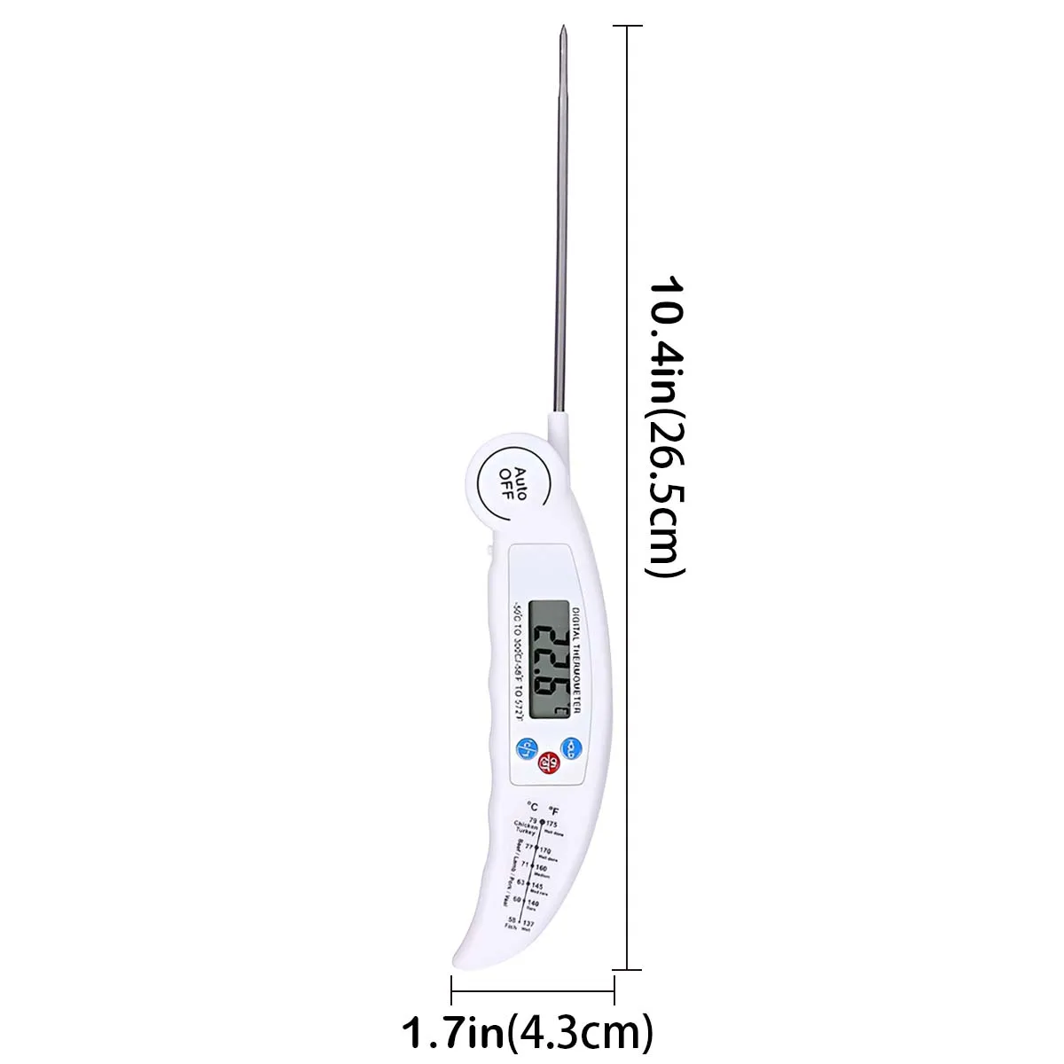 Detta digitala kökstermometer är utrustat med en fällbar 4,4-tums sond av livsmedelsklassat rostfritt stål. Den mäter temperaturen på endast 5 sekunder med en noggrannhet på ±0,8°C och ett brett temperaturintervall från -50°C till 300°C. Perfekt för både inomhus- och utomhusmatlagning, grillning, BBQ, bakning och mycket mer.