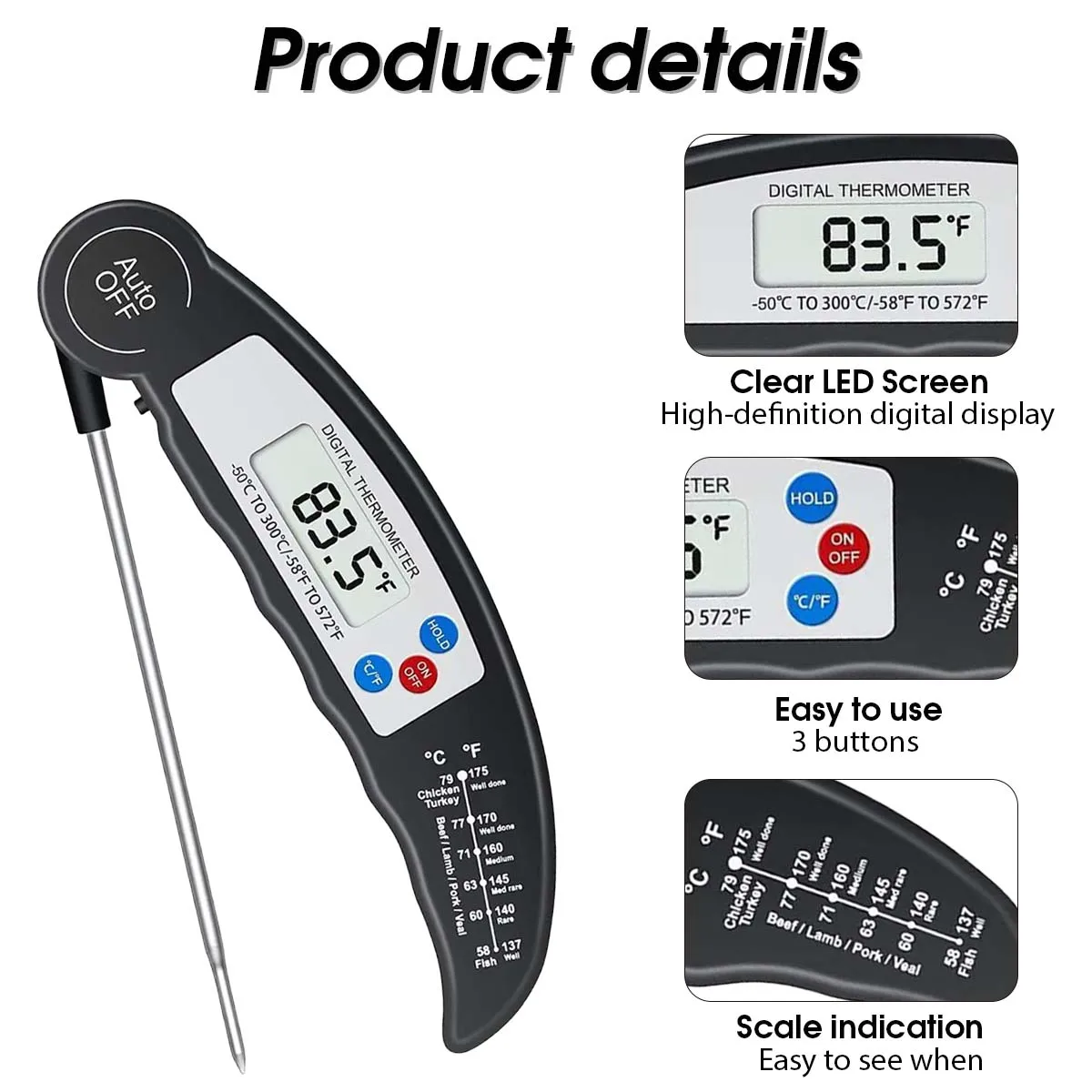 Digitalt Köks Termometer med Fällbar Probe – För Grill, BBQ och Matlagning